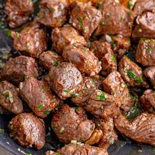 Cook steak bites to 145°F for medium-rare or 160°F for medium. Check safe beef temperatures.