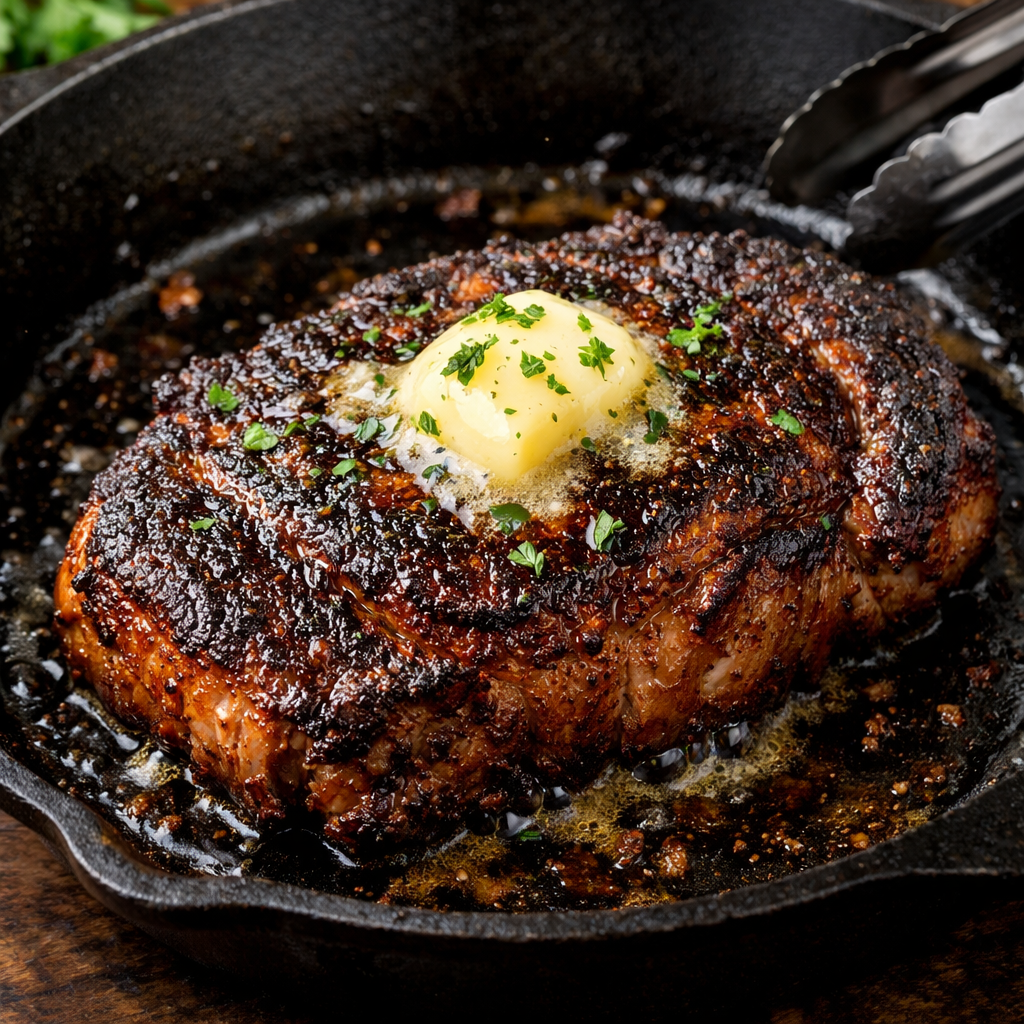 Best Blackened Ribeye Steak with Butter – Easy Juicy Steakhouse Style Recipe
